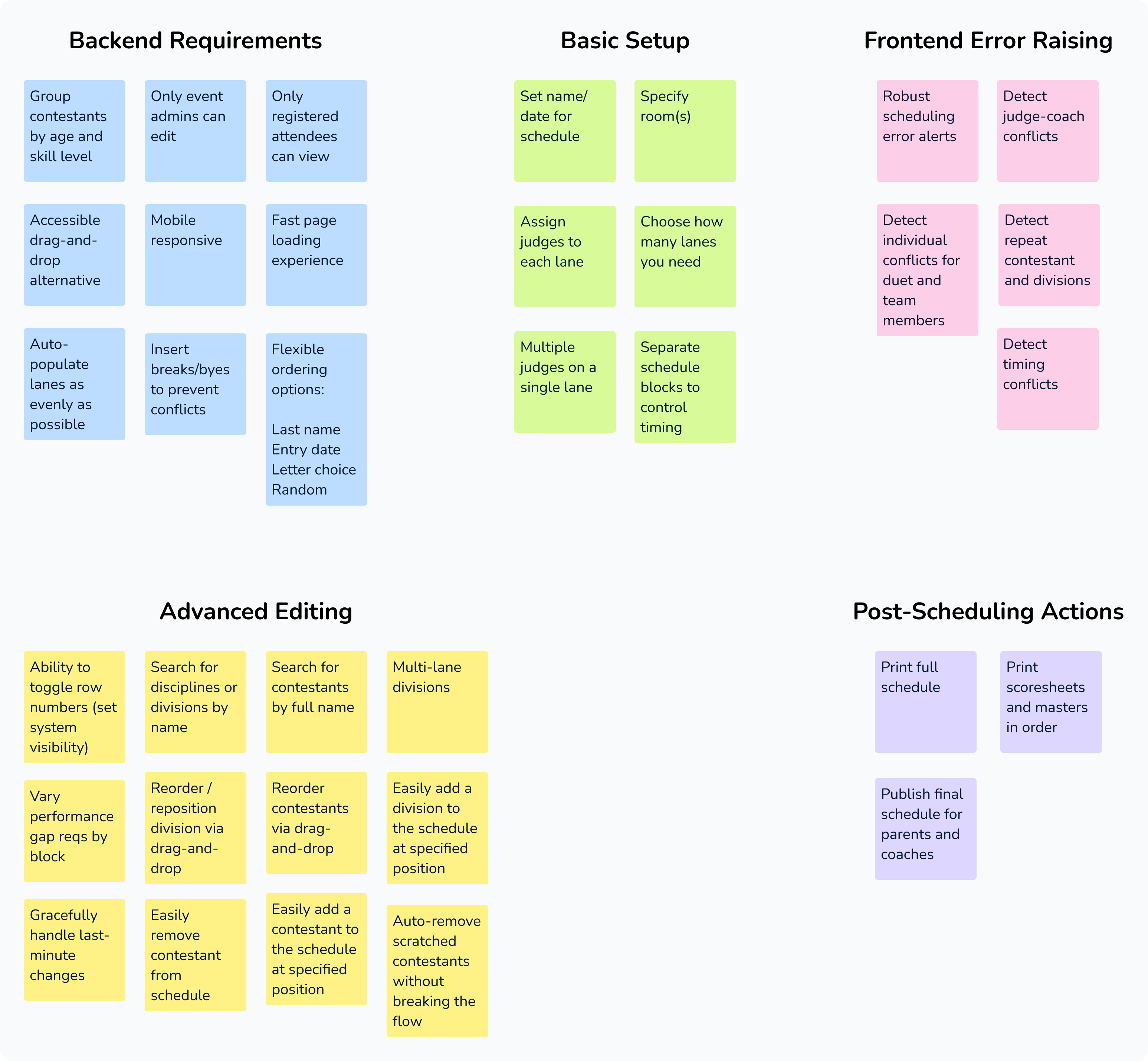 While interviewing 3 event organizers about their contest management workflows and pain points, I discovered that scheduling was the most complex and time-consuming step.